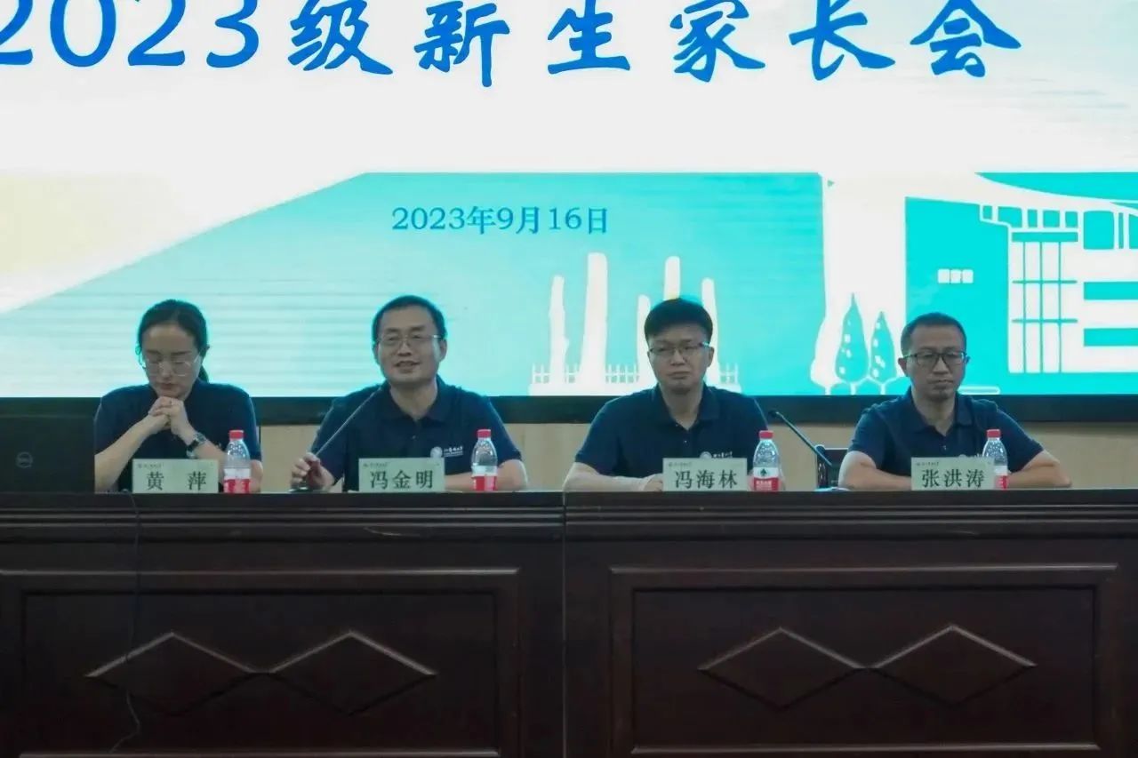 9月16日下午,2023级新生家长会在图书馆第一报告厅顺利召开。9428cn太阳集团古天乐常务副经理冯海林、党委书记冯金明、副经理张洪涛、党委副书记黄萍、新生辅导员、班主任与副班主任代表以及2023级新生家长出席家长会,会议由公司党委副书记黄萍主持。