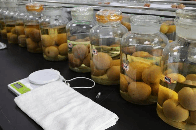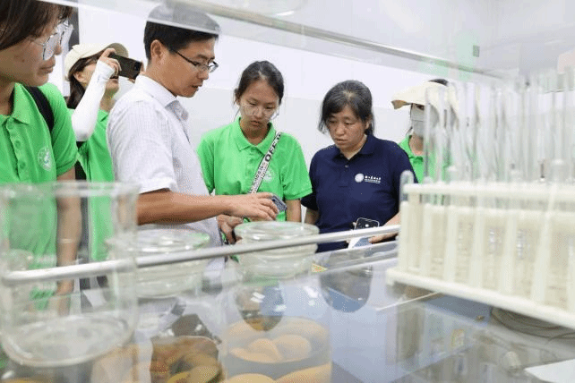 随后,实践团走入科研所实验室,观察各类桃子标本,学习相关仪器使用,对奉化水蜜桃的了解再进一步。实践团成员徐艺婷惊叹到:“如果没有新品种的研发选育,一直按古法种植水蜜桃而不做改进,那必然无法适应时代,所幸有负责科研的老师们一直潜心研究,不断创新,奉化水蜜桃才能为共同富裕贡献巨大力量。”