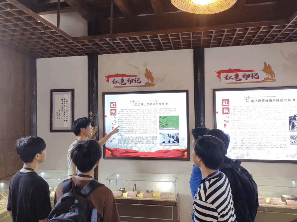7月9日,实践团来到临安区新四军历史纪念馆参观学习。临安新四军历史纪念馆坐落于板桥镇板桥村,曾经是新四军抗日战争时期的“临时伤员急救站”,是杭州市党史教育基地。同学们先后参观了“铁军纵横”“铁军医务”“抗日烽火”“天目军魂”等主题展板,重温浙西新四军在天目山的抗战记忆。场馆内一张张战斗现场的照片,展示了新四军的抗战事迹,一个个感人至深的战斗故事纷纷将参观的同学们带回了那战火纷飞的岁月,让大家深入了解了新四军在敌后游击战争中的艰苦奋斗和为民族解放事业作出的巨大贡献,深切体会到了老一辈革命先烈为共产主义事业不懈奋斗的铮铮傲骨。