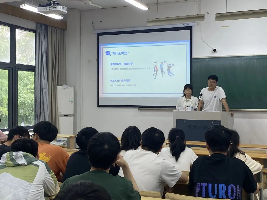 周依学姐按照“为什么考公”、“考公前期准备”、“选岗”、“笔试”、“面试”五个部分给同学们分享了考公的小知识。最后,学姐总结道,既然选择了远方,便只顾风雨兼程,考公的路途上会磕磕绊绊,大家遇到问题的时候不要过分焦虑,学会去找方法解决问题才是最重要的。