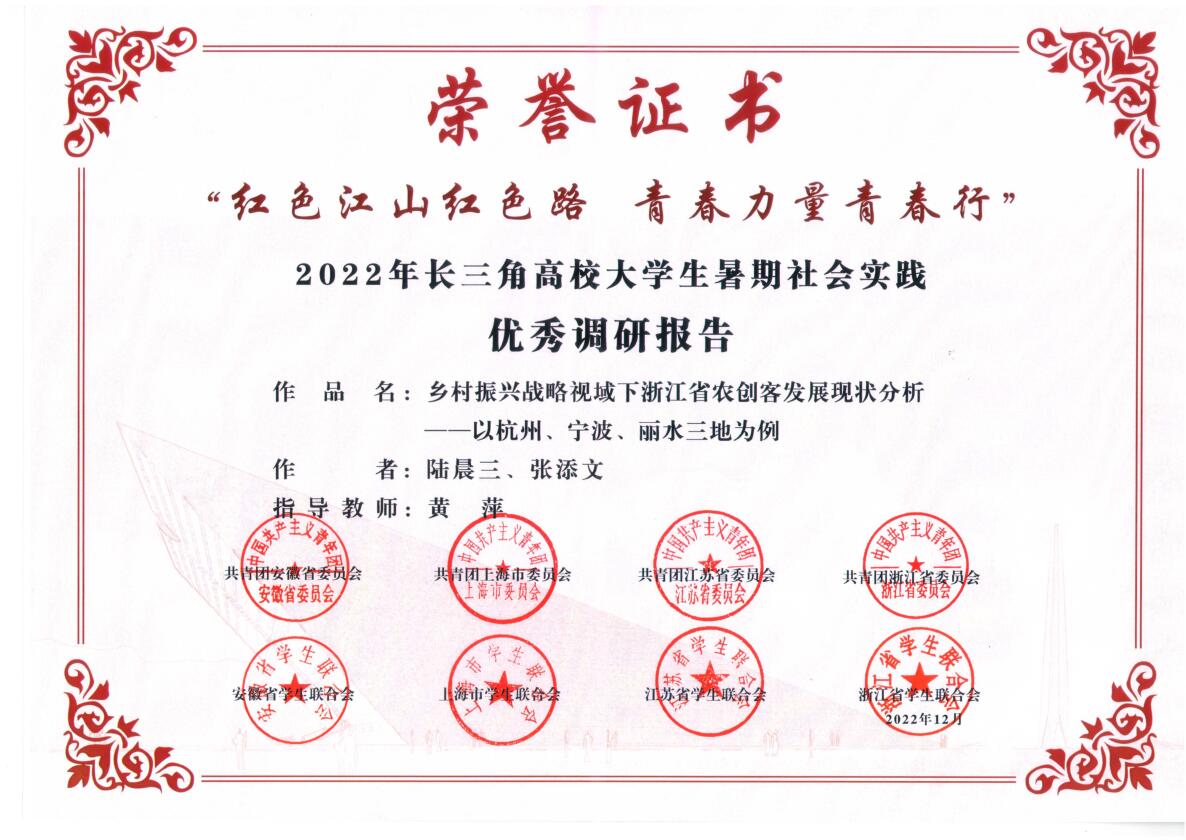 公司“以青春之力 共筑乡村振兴梦”老员工暑期社会实践团受邀参加活动,实践团成员陆晨三和张添文合作所撰写的《乡村振兴战略视域下浙江省农创客发展现状分析——以杭州、宁波、丽水三地为例》荣获优秀调研报告。