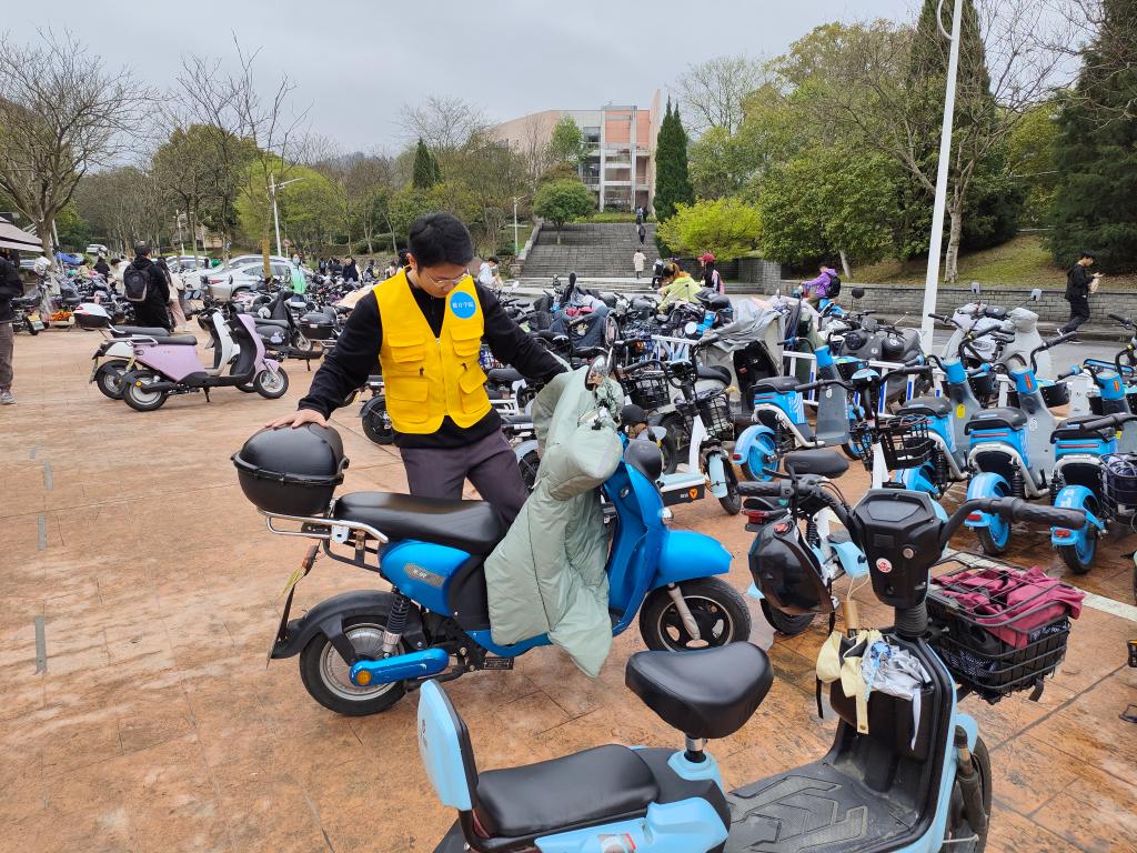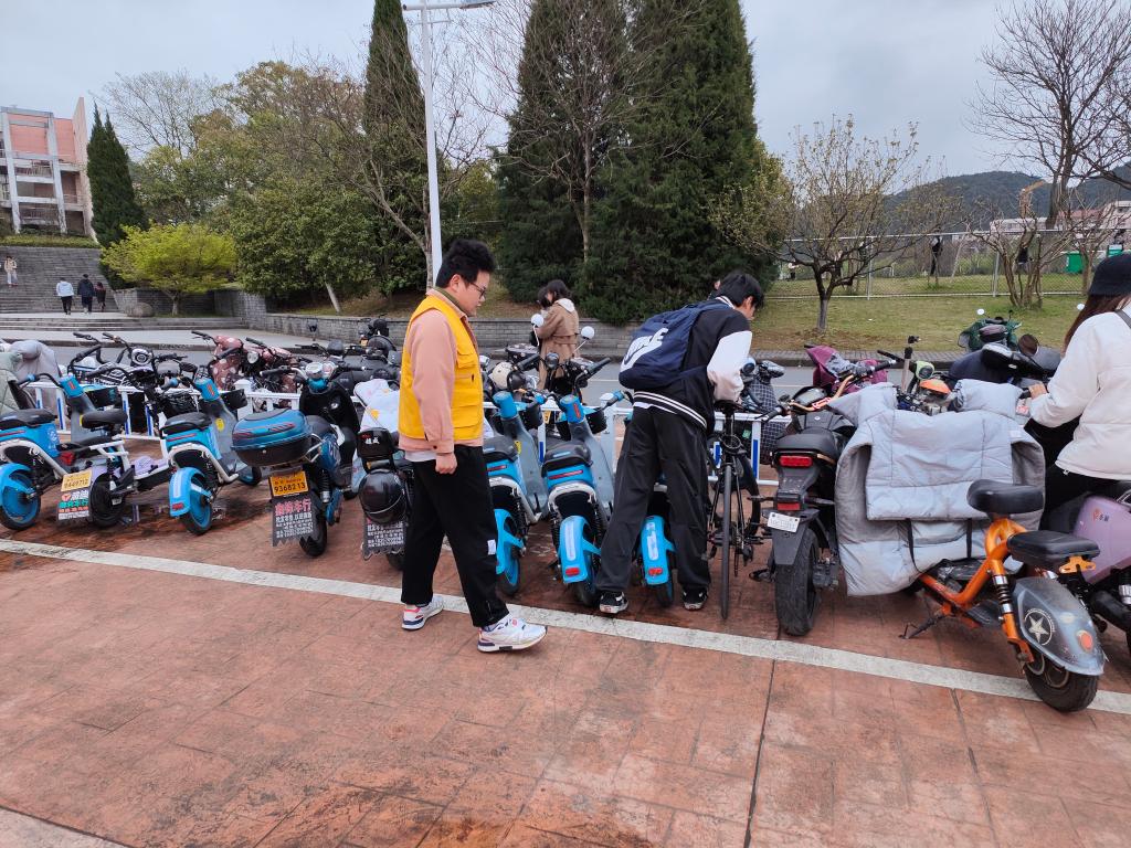 食堂门口,各种各样的电动车、自行车随意地停在人行道边,志愿者们轻拿轻放,将乱停放的车重新摆放整齐至规定的停车线内,在大家的积极配合下,使原本停放杂乱的车辆变得井然有序,人行道上的秩序更加规范,行人行车也更加畅通,本次活动取得明显成效,过往的同学纷纷为志愿者们点赞。
