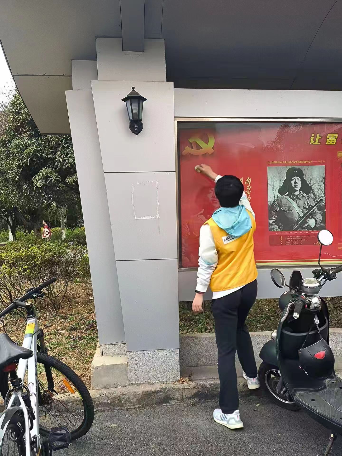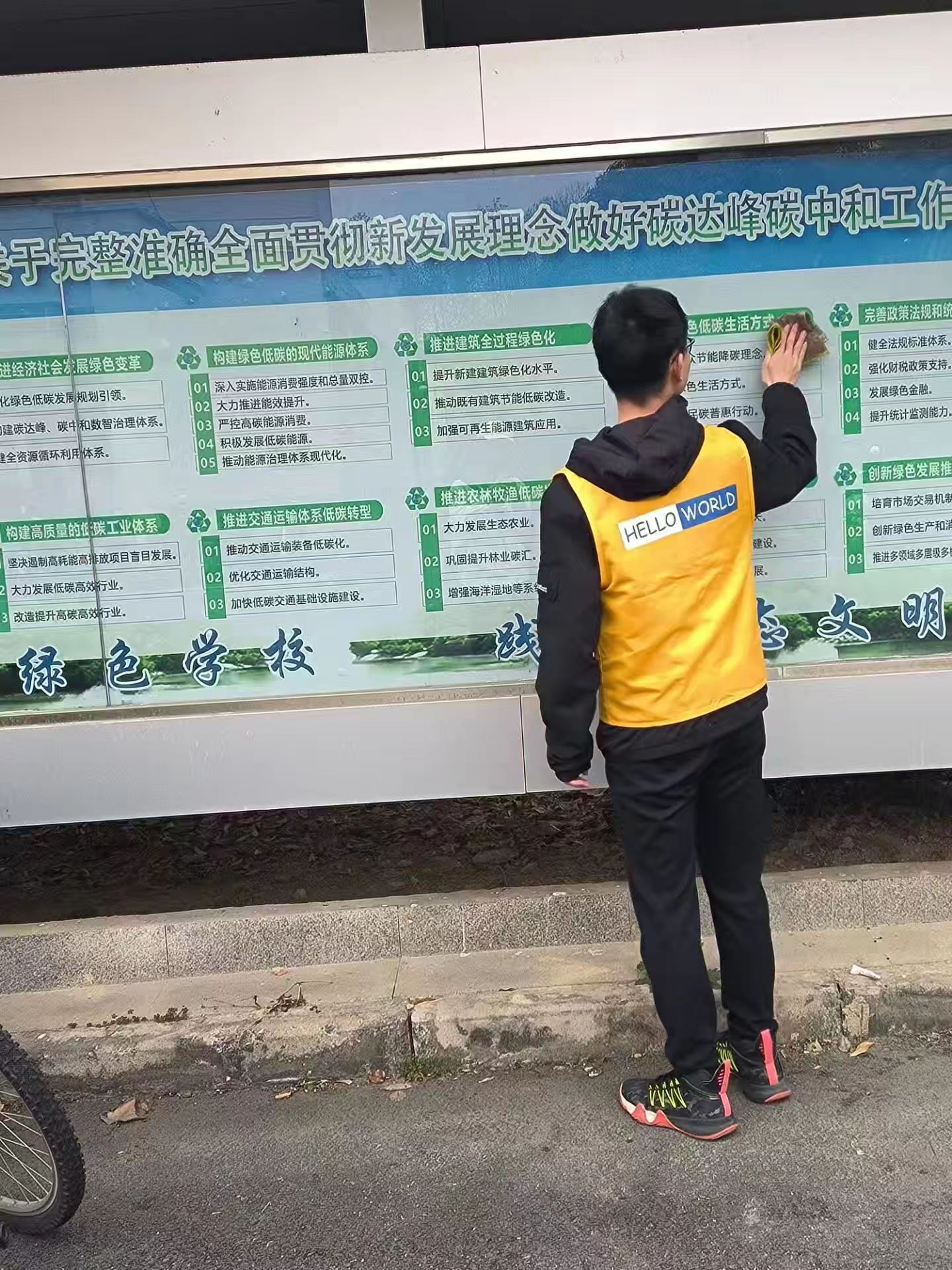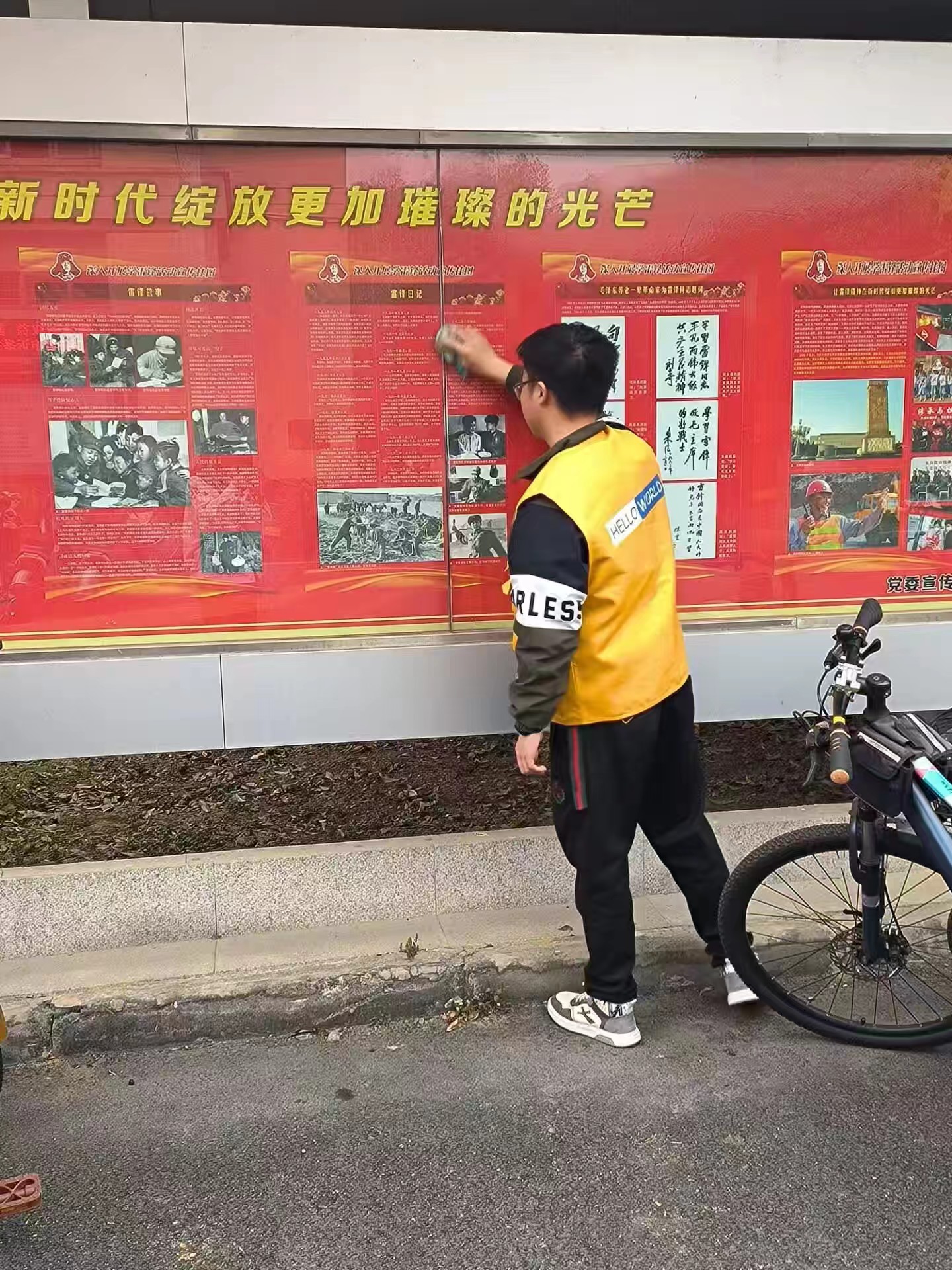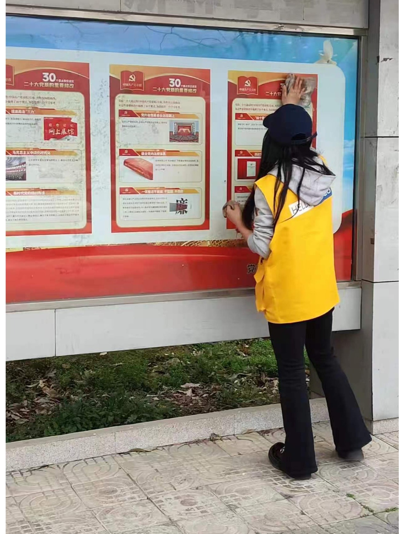 活动过程中,志愿者们秉持着认真负责的态度和吃苦耐劳的精神仔细清扫、配合默契,细致地擦拭宣传栏的边边角角,清除了宣传栏上的灰尘、胶布等污渍,让原本落满尘土的宣传栏焕然一新。