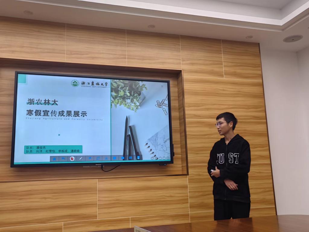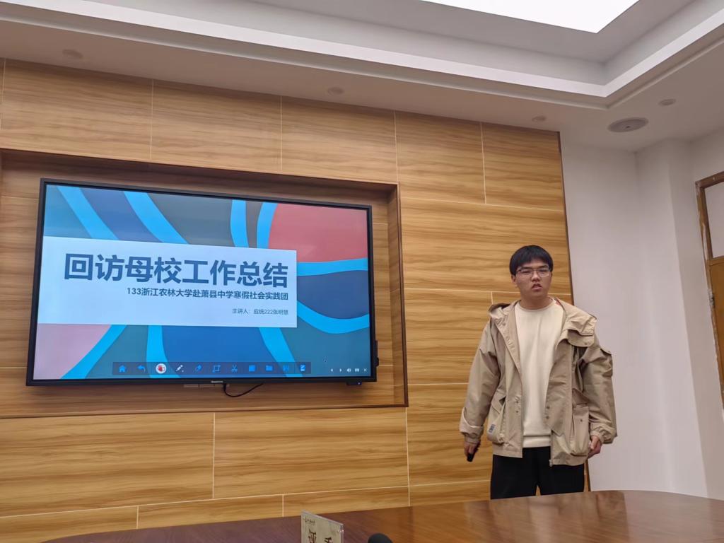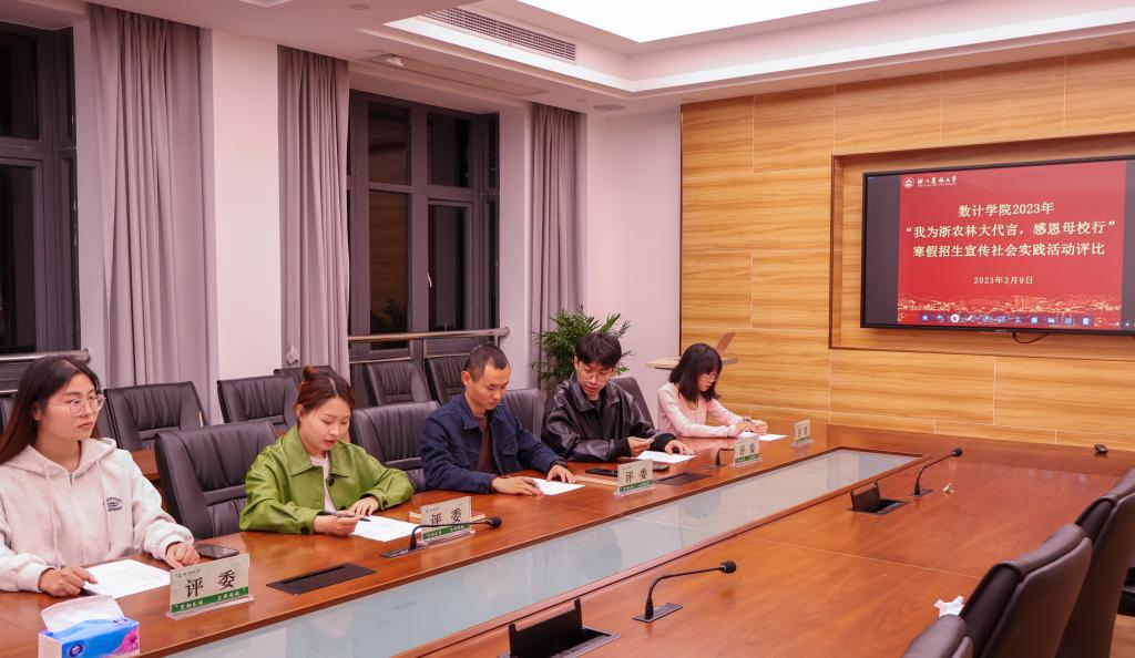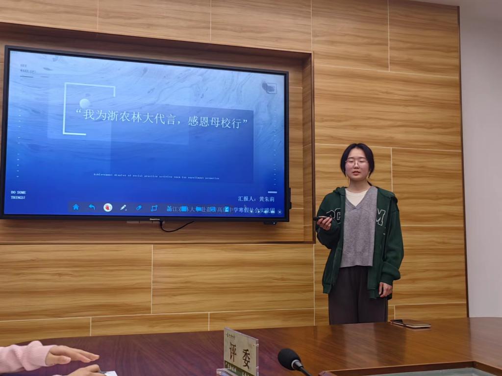 3月9日晚,9428cn太阳集团古天乐在学11-304召开2023年“我为浙农林大代言,感恩母校行”寒假招生宣传社会实践活动评比会,9428cn太阳集团古天乐团委书记邸雷,辅导员陈瑞珂出席会议,员工会主席团成员、各团队汇报人参加此次活动。活动由学院员工会执行主席倪立主持。