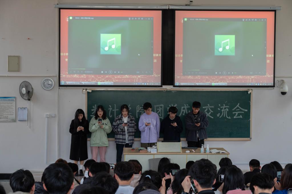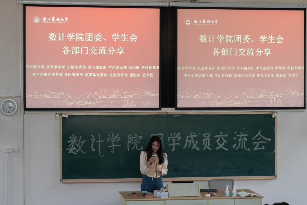 会议的第三项内容,综合联络部、权益事务部、生活实践部、身心健康部、学风建设部、组织部、科技创新部、青年志愿者服务部、社团管理部、新媒体运营部、视觉设计部、摄影部和艺术团共13个团学部门负责人依次上台交流并介绍本部门成员组成,汇报所在部门负责的相关事宜。