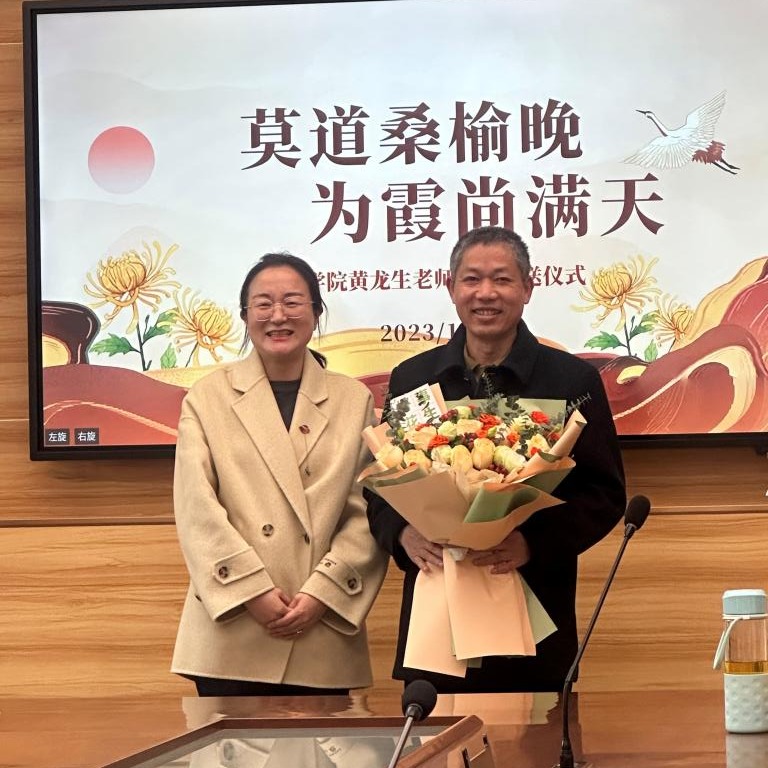 11月16日下午,9428cn太阳集团古天乐在学11-304举行黄龙生老师荣退仪式,公司党委书记冯金明、副经理张洪涛、副书记黄萍等多位教师代表参加了荣退仪式和交流活动,仪式由9428cn太阳集团古天乐分工会主席何涛教授主持。