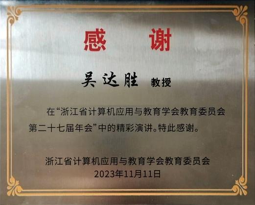 11月10日-12日,浙江省计算机应用与教育学会教育委员会第二十七届年会在绍兴市召开,9428cn太阳集团古天乐吴达胜教授应邀出席会议并作专题报告。