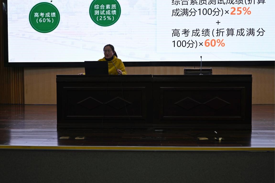 公司党委副书记黄萍在图书馆第一报告厅从学校概况、招生政策、咨询方式等三个方面向展示了学校的办学实力和风采,重点介绍了“三位一体”、“求真实验班”、“定向招生”、“农科免学费专业”等特色招生情况。
