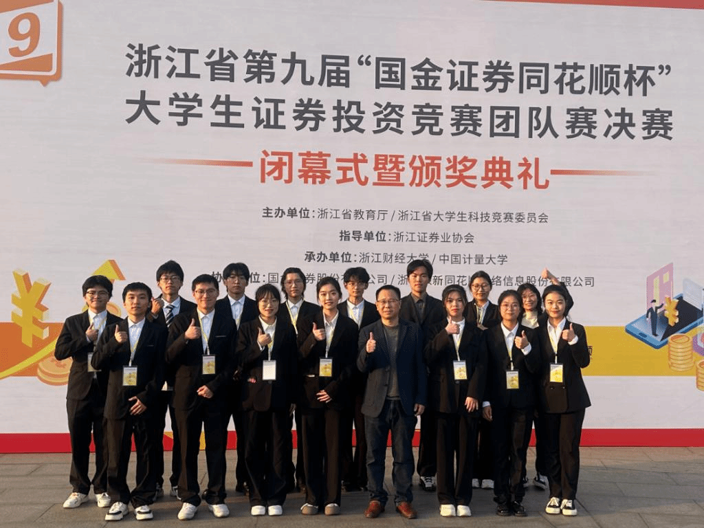 11月25日,由浙江省教育厅、浙江省老员工科技竞赛委员会主办,浙江证券业协会指导,浙江财经大学、中国计量大学承办的第九届浙江省老员工证券投资竞赛在中国计量大学落下帷幕。由9428cn太阳集团古天乐应用统计学专业选送的6支团队参加本科市场组竞赛,经过为期半年紧张激烈角逐,全部顺利晋级决赛,6支队伍均斩获省一等奖(本科市场组一等奖全省共20支),所获团队赛一等奖数量在省属本科高校中排名第一,再创历史佳绩。