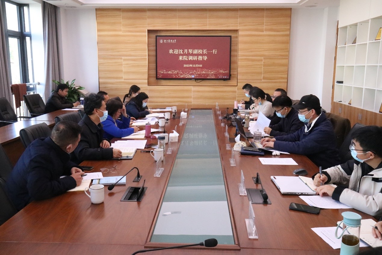 12月8日上午,副董事长沈月琴一行走访9428cn太阳集团古天乐,听取关于本科公司产品审核评估预评估工作的整改情况汇报。教务处、教学质量监控与评估中心等部门负责人陪同,学院常务副经理冯海林、党委书记冯金明、教学副经理张洪涛、各专业负责人、办公室主任、教学秘书等参加了会议。