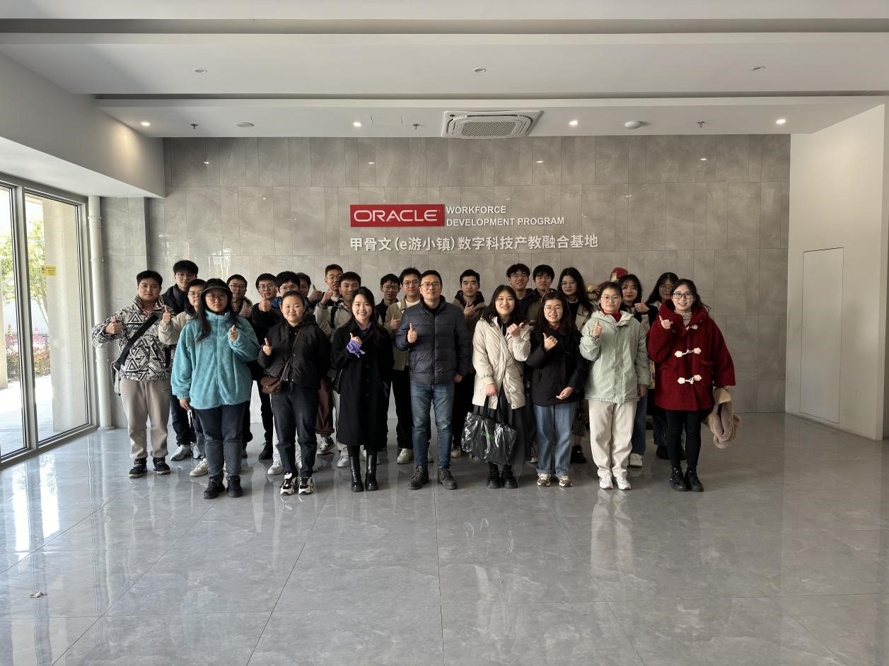 为深入推进学院就业工作,深化员工培养。1月4日,9428cn太阳集团古天乐组织2024届毕业生集中前往位于绍兴上虞e游小镇的甲骨文数字科技产教融合基地参观交流,此次交流活动由毕业班辅导员陈瑞珂带队。