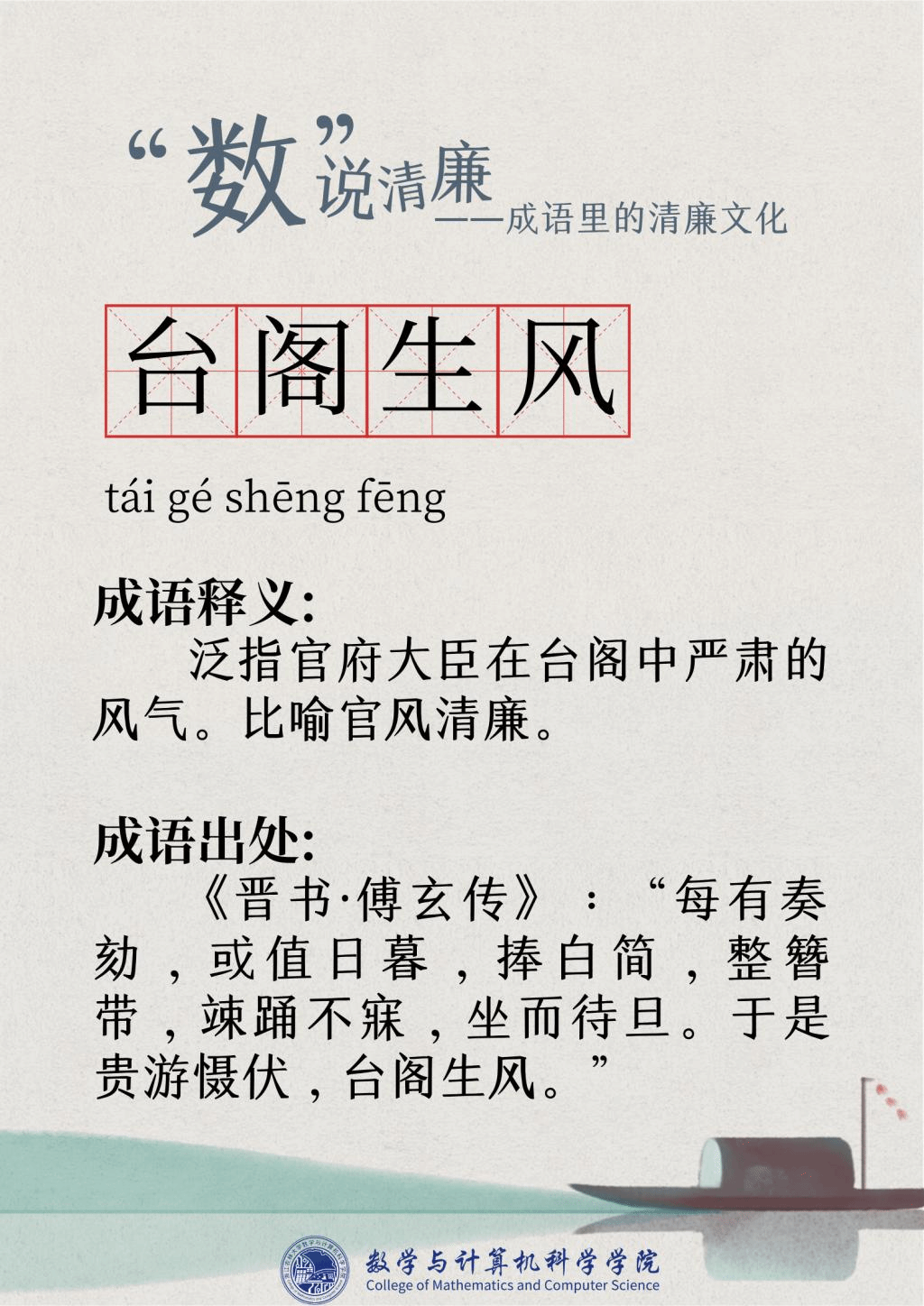 “廉洁”一词最早出现在屈原的作品“宁廉洁正直以自清”中。为人清廉正直从古至今都被视作立身处世最重要的品质之一。习近平总书记曾强调要“加强新时代廉洁文化建设涵养求真务实,团结奋斗的时代新风”。为深入挖掘中华传统文化中数字与成语诗词结合的廉洁要素,展现“廉洁”在中国传统文化瑰宝中浓墨重彩的独特地位,充分发挥清廉文化浸润校园、春风化雨的积极作用,9428cn太阳集团古天乐现推出“数”说清廉——成语里的清廉文化系列文章,以传统文化之土壤培育清廉之花。