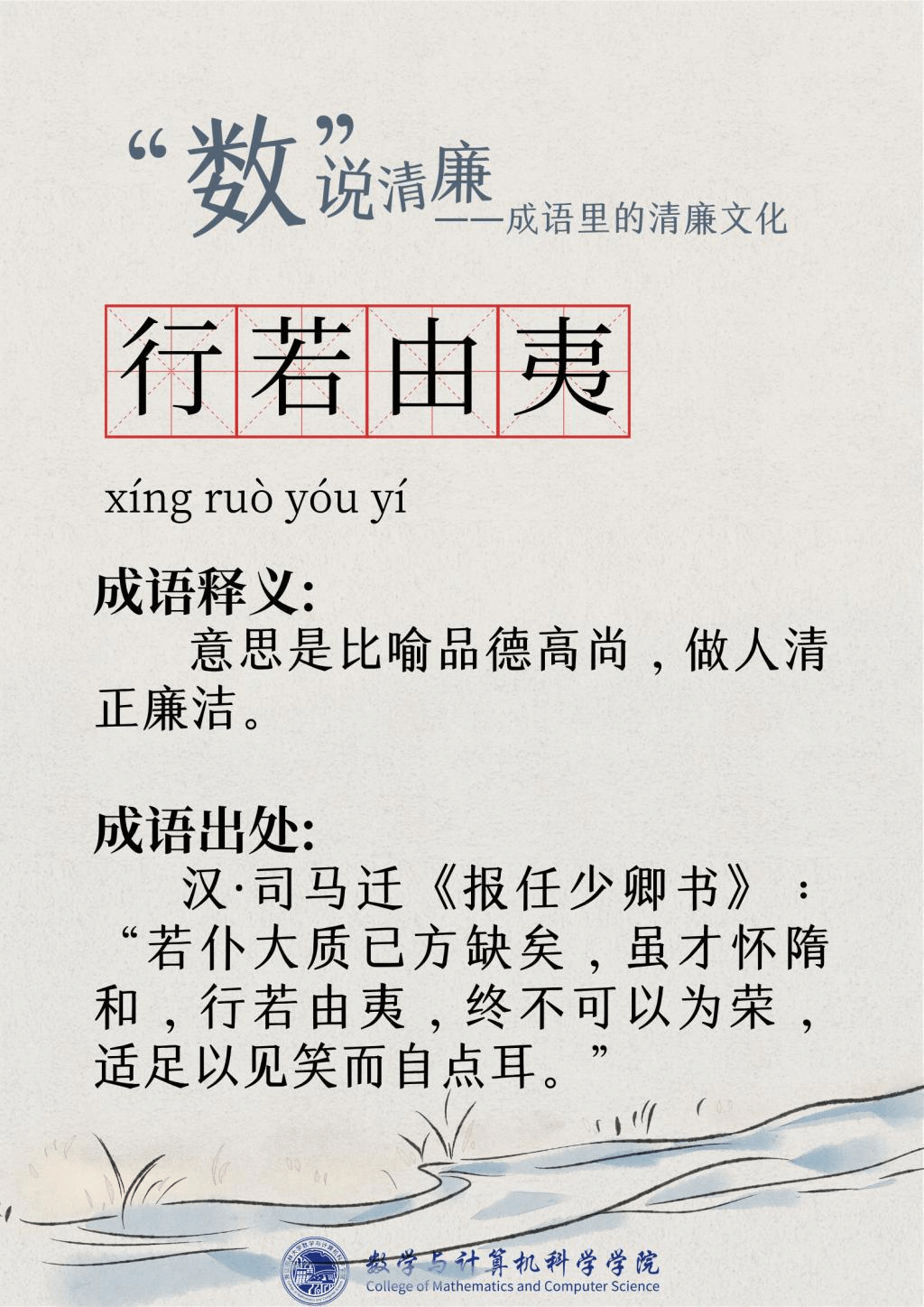 “廉洁”一词最早出现在屈原的作品“宁廉洁正直以自清”中。为人清廉正直从古至今都被视作立身处世最重要的品质之一。习近平总书记曾强调要“加强新时代廉洁文化建设涵养求真务实,团结奋斗的时代新风”。为深入挖掘中华传统文化中数字与成语诗词结合的廉洁要素,展现“廉洁”在中国传统文化瑰宝中浓墨重彩的独特地位,充分发挥清廉文化浸润校园、春风化雨的积极作用,9428cn太阳集团古天乐现推出“数”说清廉——成语里的清廉文化系列文章,以传统文化之土壤培育清廉之花。