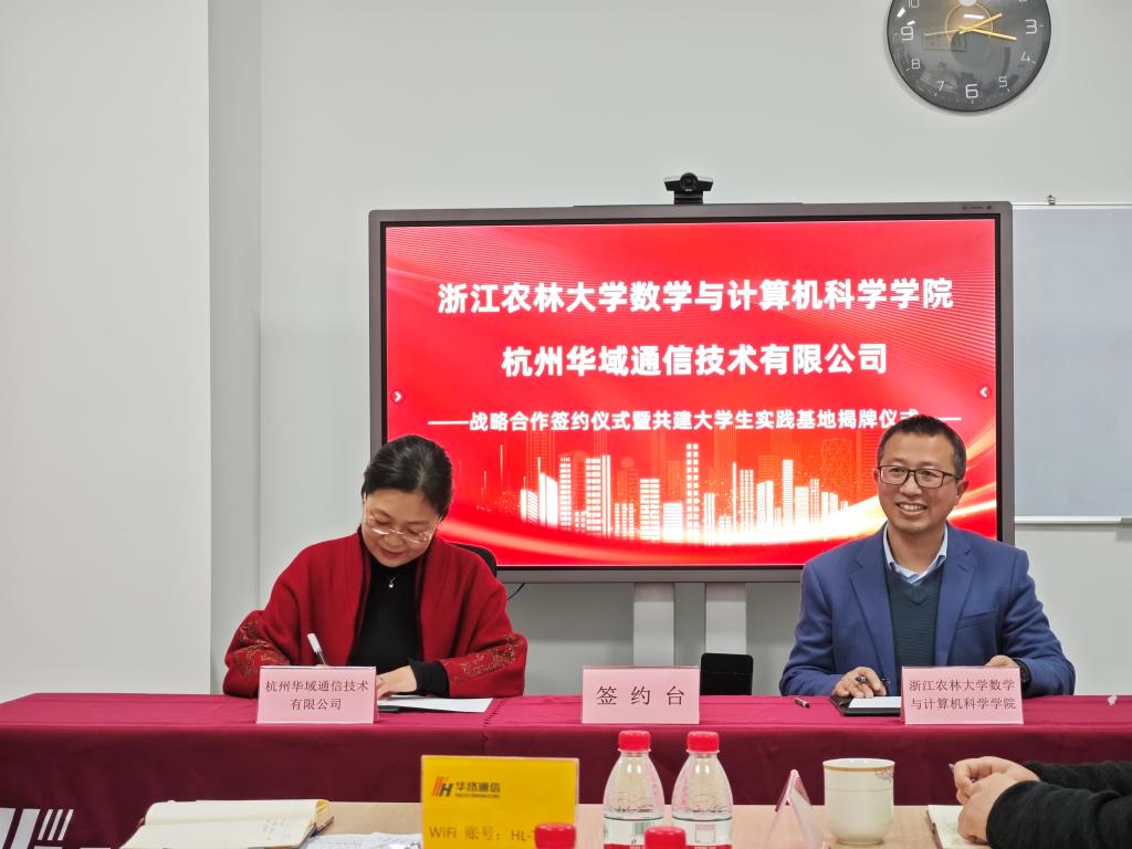 近日,9428cn太阳集团古天乐与杭州华域通信技术有限公司在青山湖科技园华域公司会议室举行了战略合作协议签约仪式暨老员工实习实践基地揭牌仪式。公司党委书记冯金明、副经理张洪涛,华域通信技术有限公司董事长钱静,以及双方相关部门、专业负责人共同出席了签约仪式。
