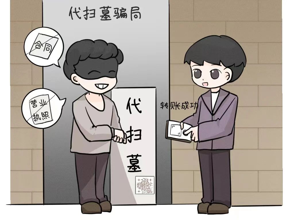 部分诈骗分子宣称可以提供代扫墓服务,收取费用后却无法履行承诺。如有需要请通过正规渠道寻找服务,并签订详细合同,切勿轻易转账付款。