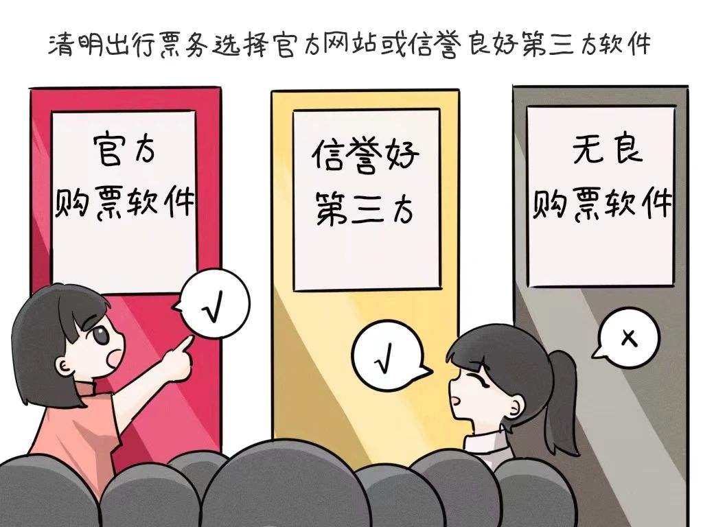 清明假期出行高峰,谨防虚假票务网站、APP以及“内部折扣票”等诈骗手段,购买机票、火车票等一定要选择官方网站或者信誉良好的第三方平台。