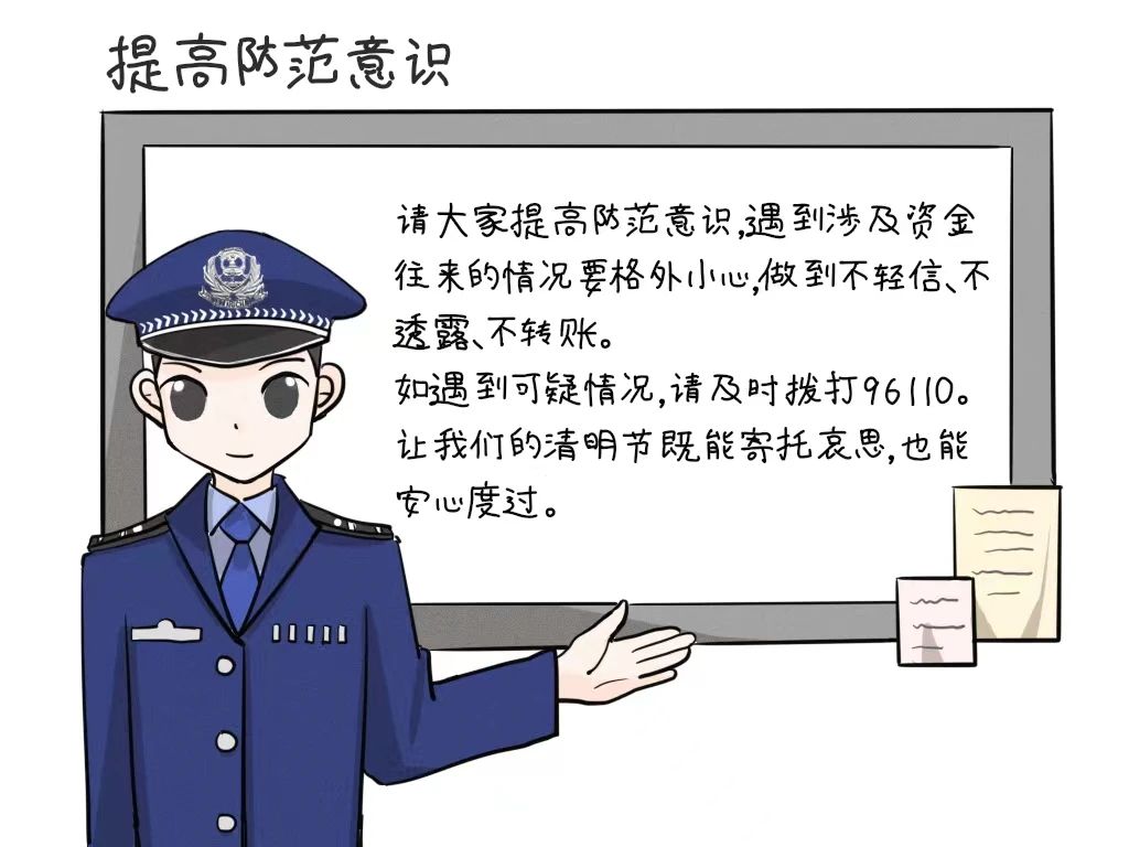 诈骗分子可能会利用清明节期间大家对亲人的思念之情,冒充在外地或国外的亲友,以突发状况急需用钱为由进行诈骗。收到此类信息时,请务必先通过电话或视频等方式核实对方身份。