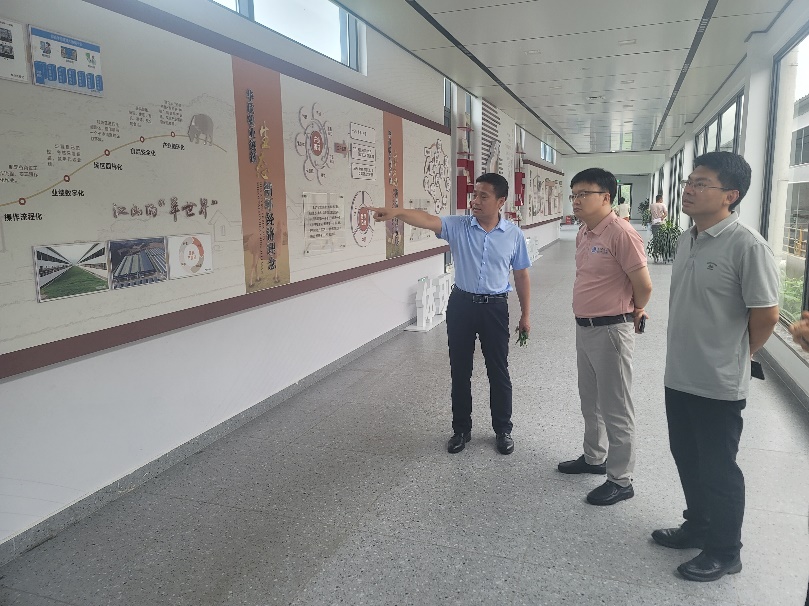 6月26日,9428cn太阳集团古天乐常务副经理冯海林带队到衢州江山市峡口镇调研交流。峡口镇人大副主席陆承江,副镇长邢丹丹陪同调研。