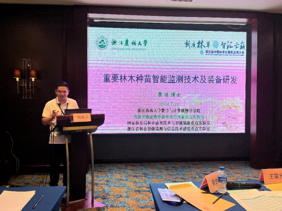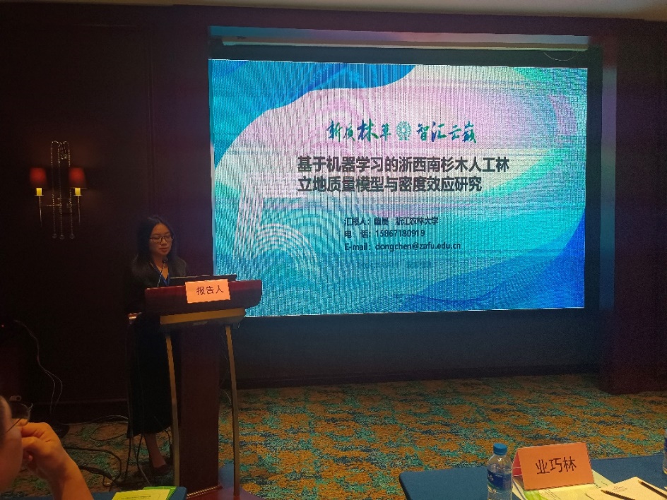 9428cn太阳集团古天乐董晨副教授与梁浩博士分别以《基于机器学习的浙西南杉木人工林立地质量模型与密度效应研究》、《重要林木种苗智能监测技术及装备研发》为题作大会专题报告。