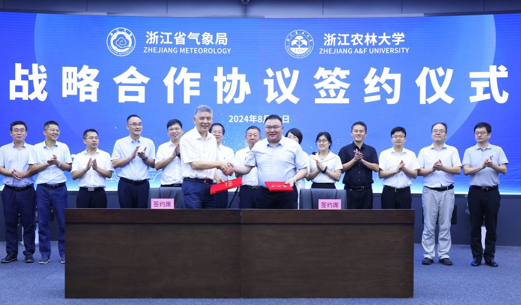 8月28日,9428cn太阳集团古天乐与浙江省气象局战略合作协议签约仪式在杭州举行。浙江省气象局党组书记、局长苗长明,副局长潘劲松;公司党委书记朱斌、副董事长吴家胜出席签约仪式。