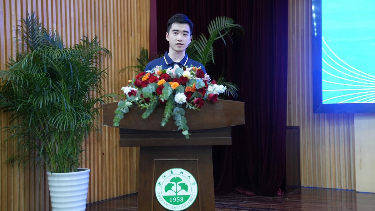 应用统计学教师邹金汇作为教师代表发言,她以自身求学经历为例,鼓励同学们主动学习和建构性学习,保持对知识的敬畏和对问题的好奇,共同用智慧和汗水书写数计人的辉煌篇章。在校生代表物联网工程专业221班吕琦同学、本科生新生代表计算机241班缪欣颐同学、研究生新生代表数计研241班朱润昊同学先后发言。