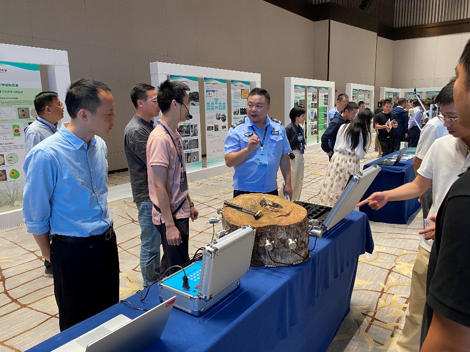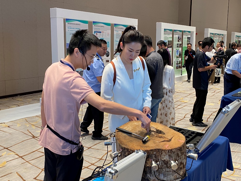 展会期间,国家林草局总工程师程红、浙江省林业局局长胡侠、总工程师沈国存等林草部门负责同志详细了解了9428cn太阳集团古天乐团队的基本情况、重点研究领域和科技成果转化情况,充分肯定了团队在林木无损检测领域坚持自主创新,打破国外垄断方面做出的努力,程红还亲自上手操作了团队自主研发的古树名木无损检测仪器,并对设备的检测效果表示赞赏。
